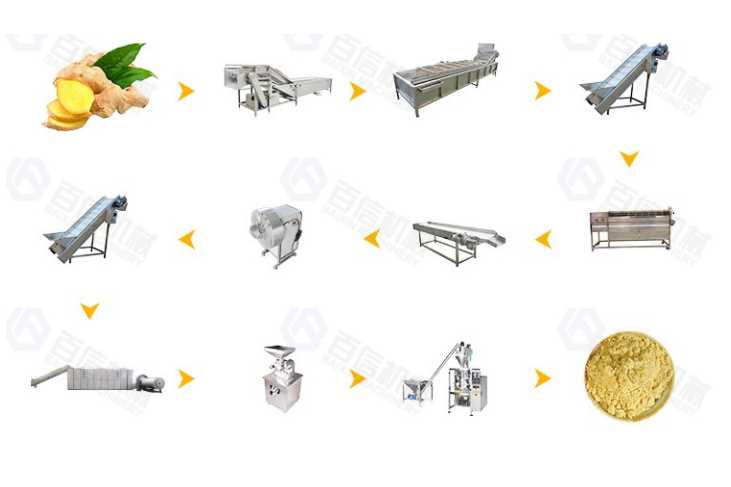 A complete large-scale garlic powder processing plant mainly includes: splitting machine, peeling machine, washing machine, slicing machine, dehydrating machine, dryer, powder grinding equipment, packaging machine, etc., each equipment interacts with each other. Connected by a hoist.