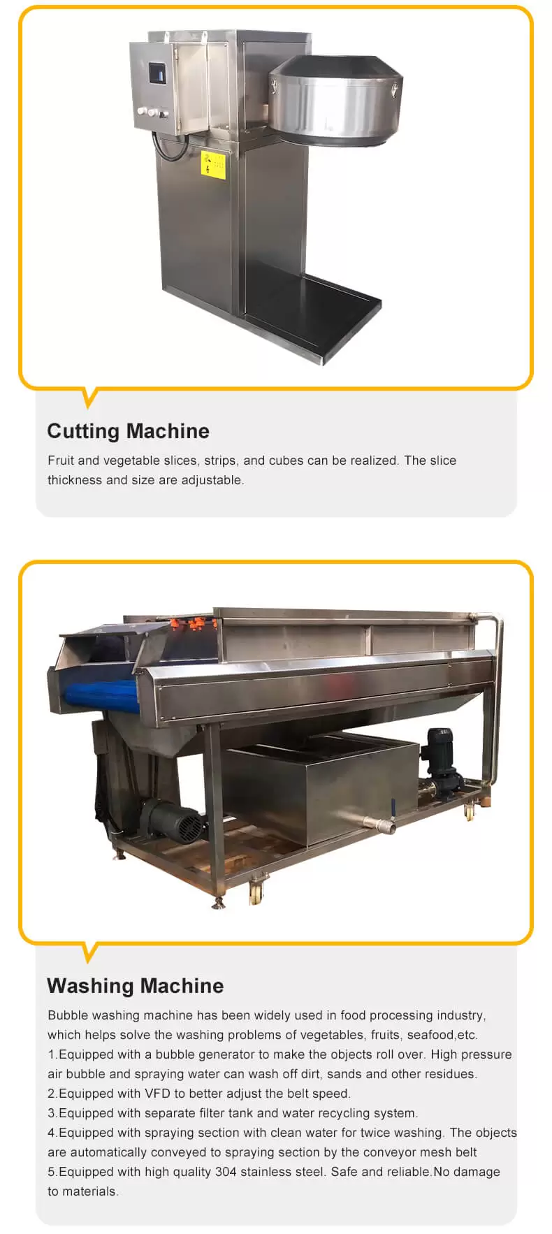 Potato chips complete sets of equipment are cleaning and peeling machine, slicing machine, blanching machine, dehydrator, fryer, deoiling machine, freezer, packaging machine, etc. The equipment has the characteristics of less investment, quick effect, good quality, and high benefit.